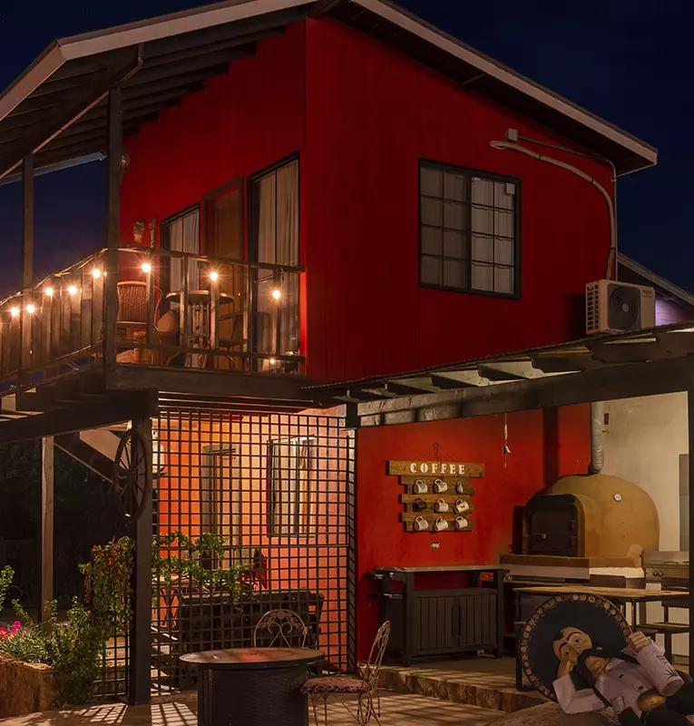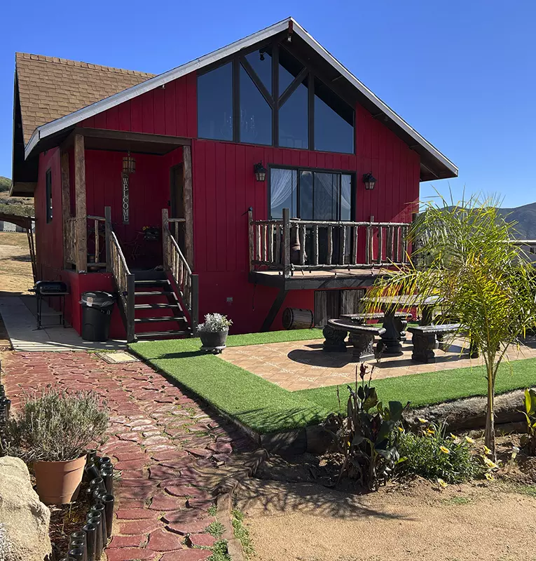 Nos encontramos en el centro de la ruta del vino donde encuentras vinícolas a sólo cinco minutos como la casa de Frida, alximia, etc restaurantes como ochentas pizza, King en Queen, Correcaminos etc. Nuestra cabaña la roja está en un area privada Donde tenemos otras tres cabañas por si requieren más habitaciones.